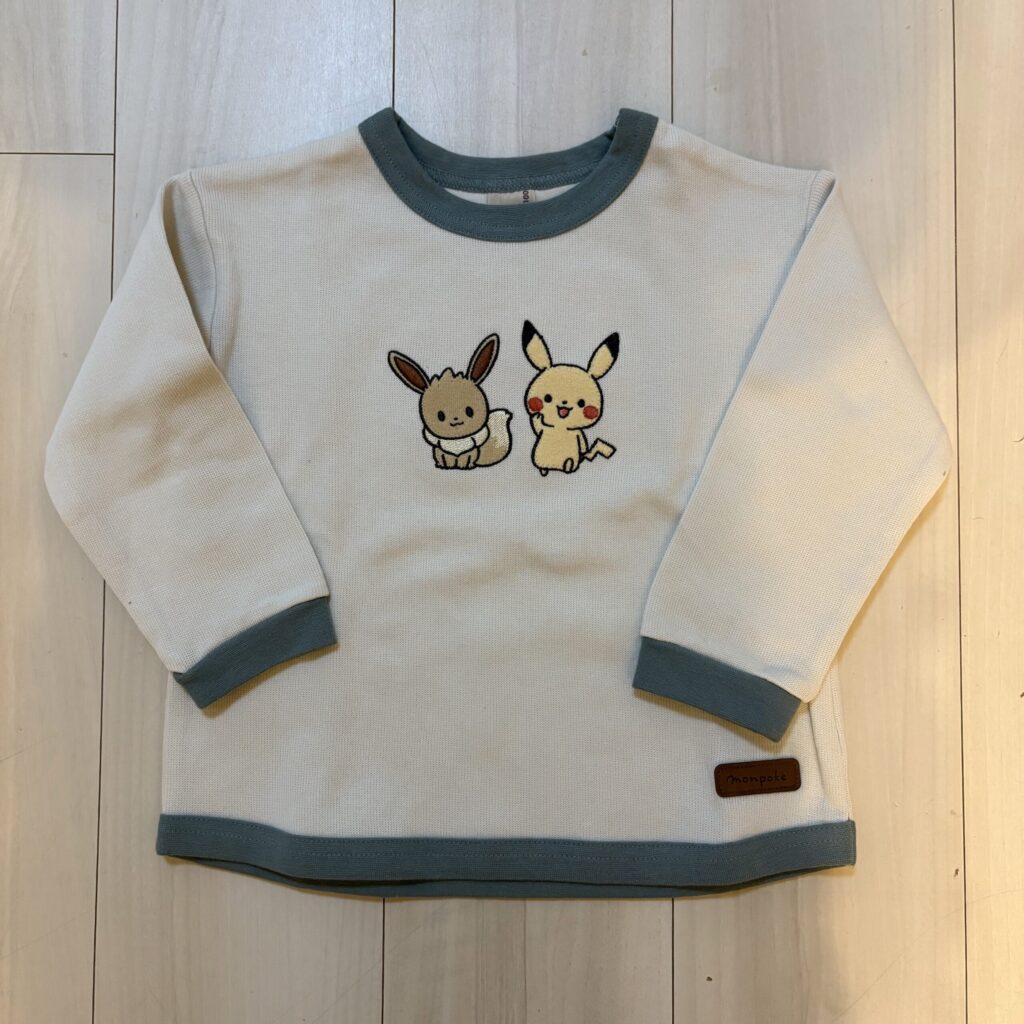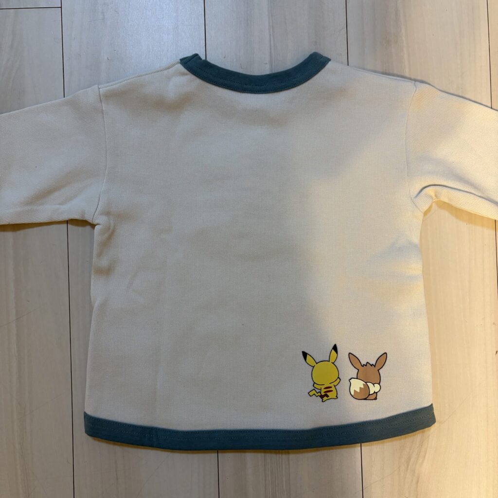 胸元にピカチュウとイーブイのプリントが入ったデザイン。